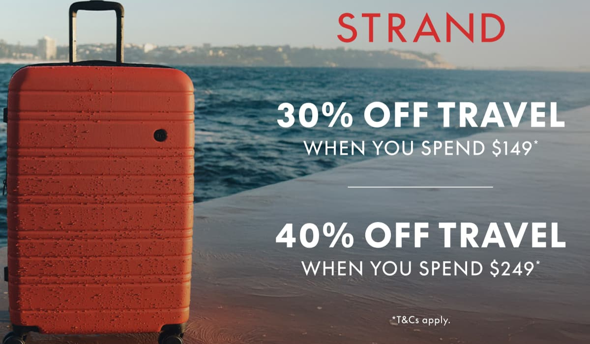 Your summer starts here — visit Strand and save up to 40% off* luggage and travel bags.
